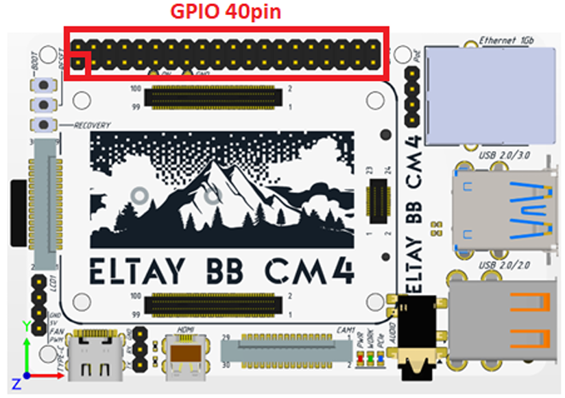 - Разъем GPIO 40pin. Совместим со сторонними модулями расширения.