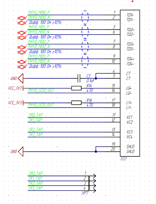 - Ethernet (разъем RJ45 (XS1) c поддержкой PoE). Контакты PoE выведены на разъем XP7. Подключение разъема Ethernet с поддержкой PoE: